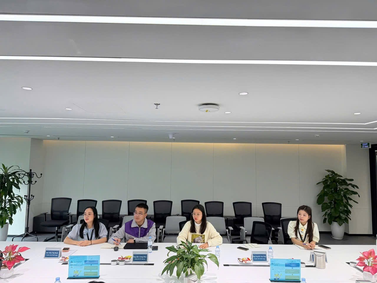 Trong buổi gặp gỡ, đại diện Ban Giám hiệu nhà trường và lãnh đạo Khoa Ngoại ngữ đã trao đổi với sinh viên về quá trình thực tập, những thuận lợi và khó khăn khi làm việc trong môi trường doanh nghiệp có yếu tố nước ngoài. Các sinh viên ngành Ngôn ngữ Trung Quốc cho biết, quá trình thực tập tại Tập đoàn Luxshare là cơ hội quý báu giúp các em vận dụng kiến thức đã học vào thực tế, đặc biệt là kỹ năng giao tiếp tiếng Trung, kỹ năng làm việc nhóm và tác phong làm việc chuyên nghiệp.